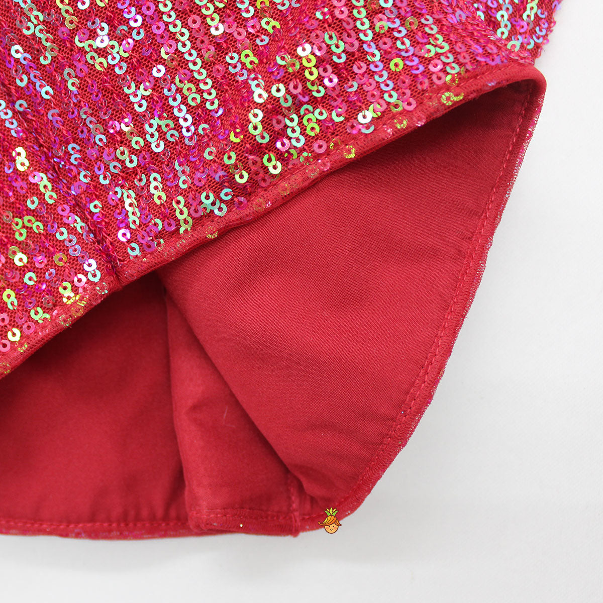 Maroon Sequined Cape Style Top With Multi Layered Frilly Lehenga